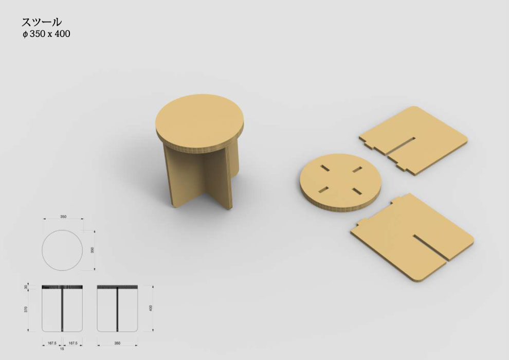 強化ダンボールシェルター スツール