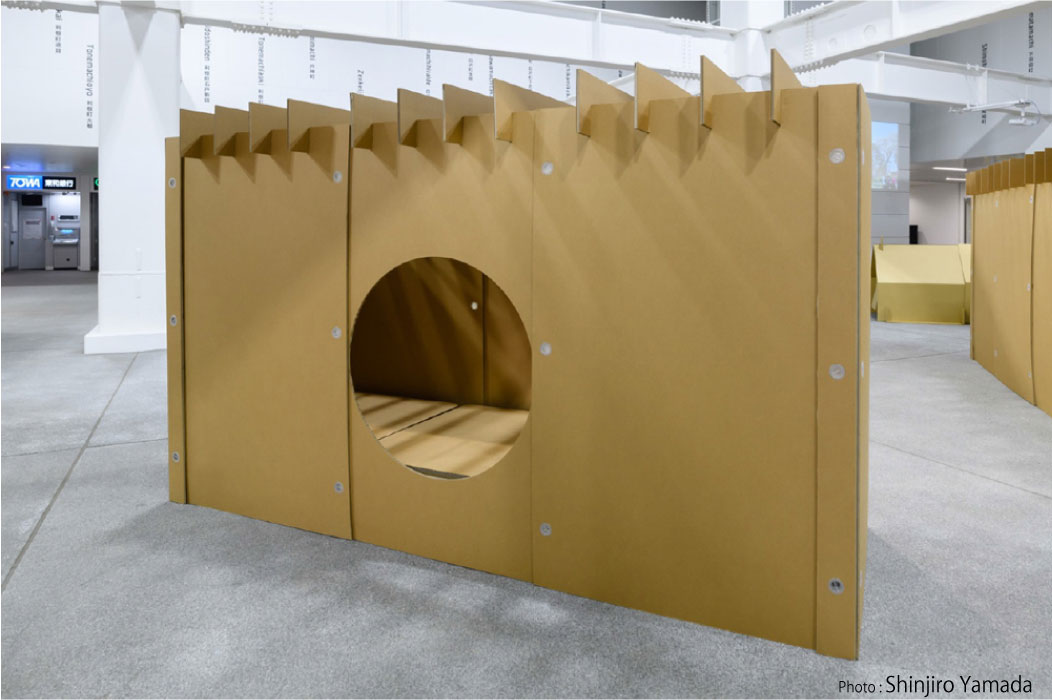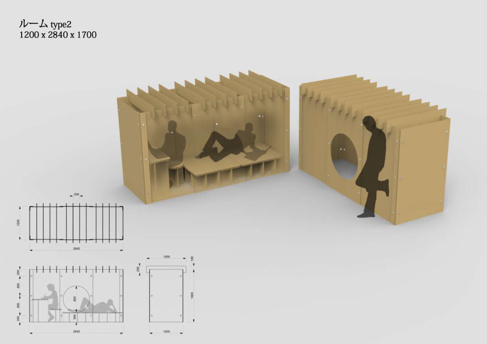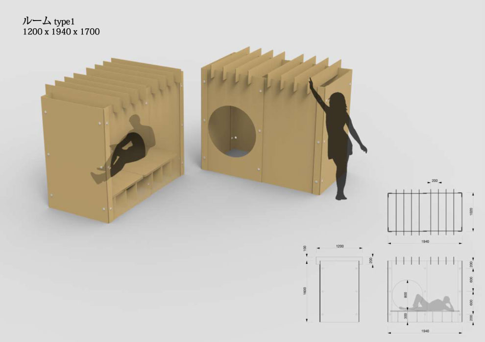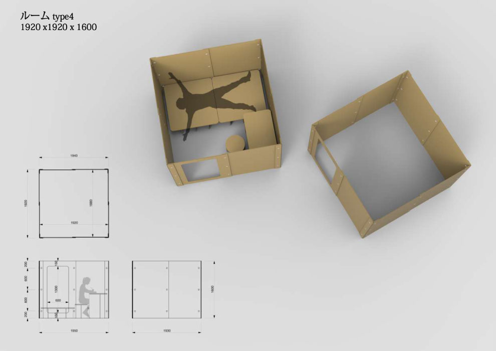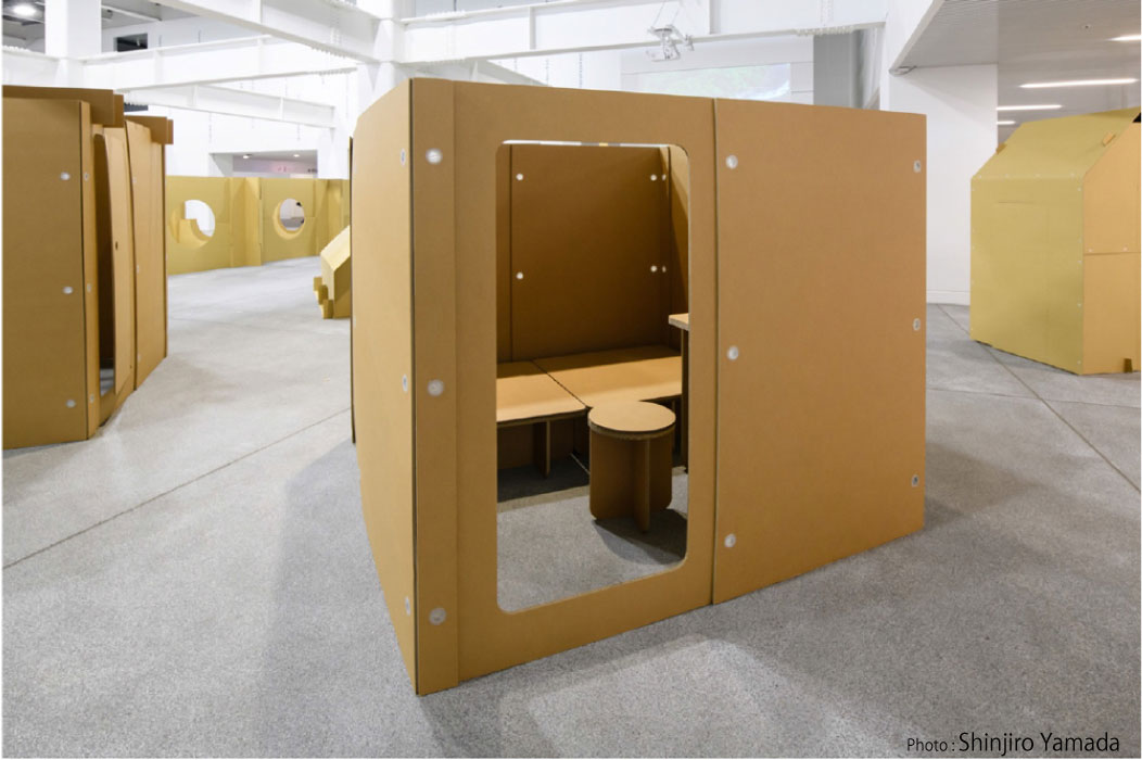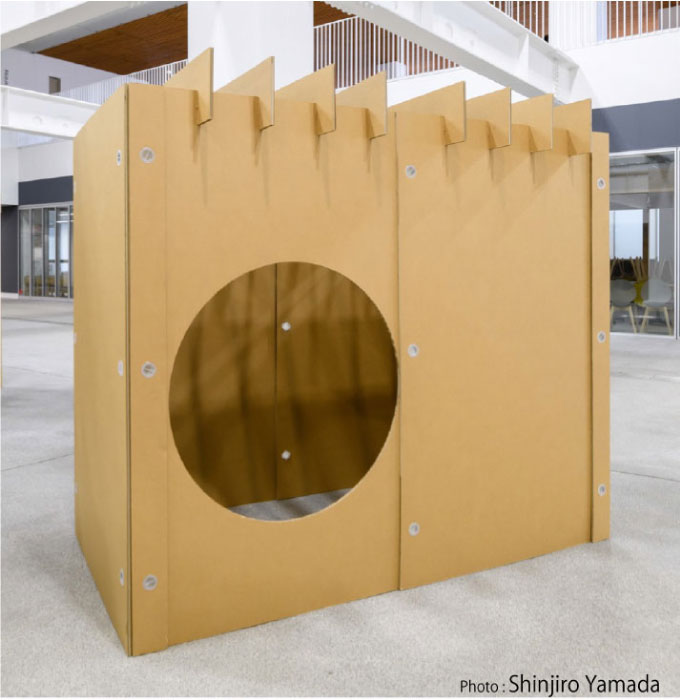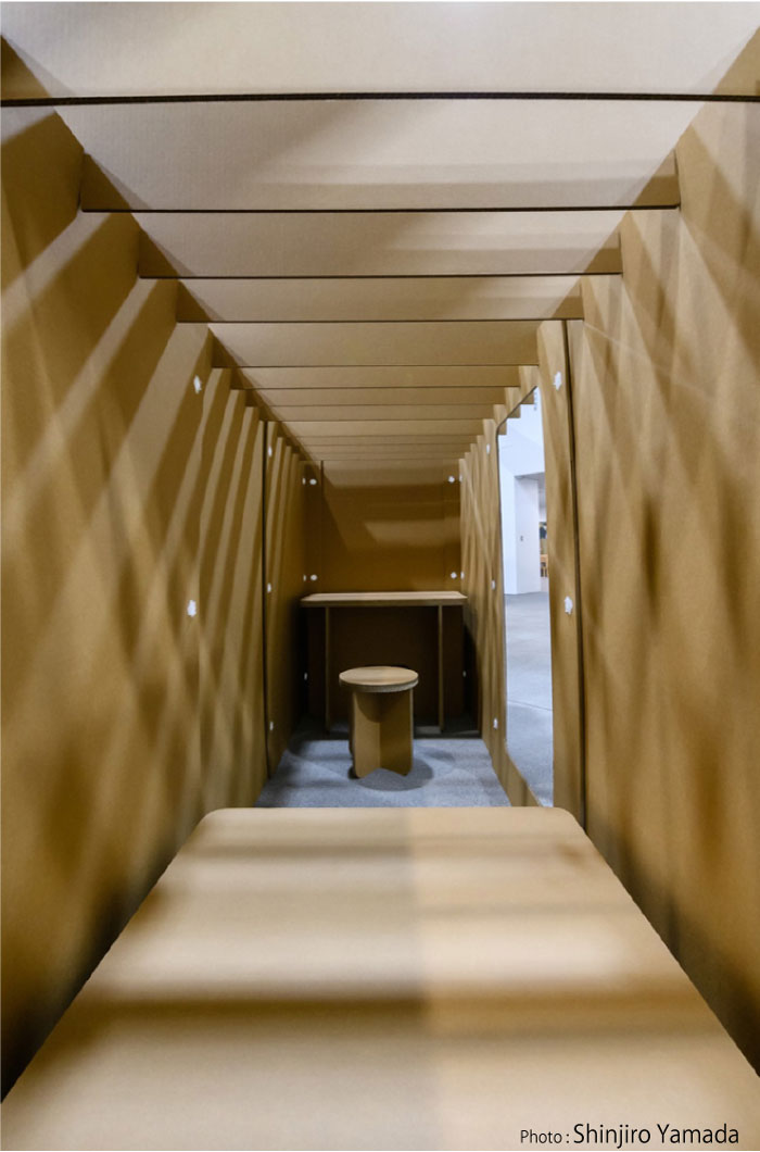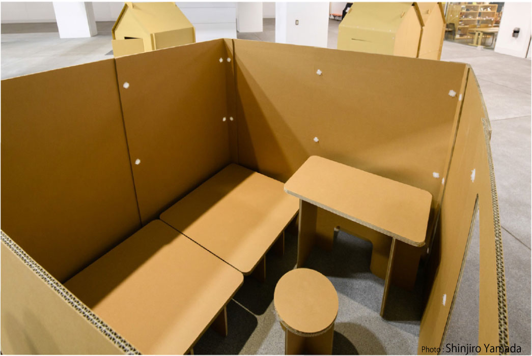 • 15mm厚の強化ダンボールを使用し強く十分な剛性があり、数カ月の滞在にも十分耐えうる耐久性があります。