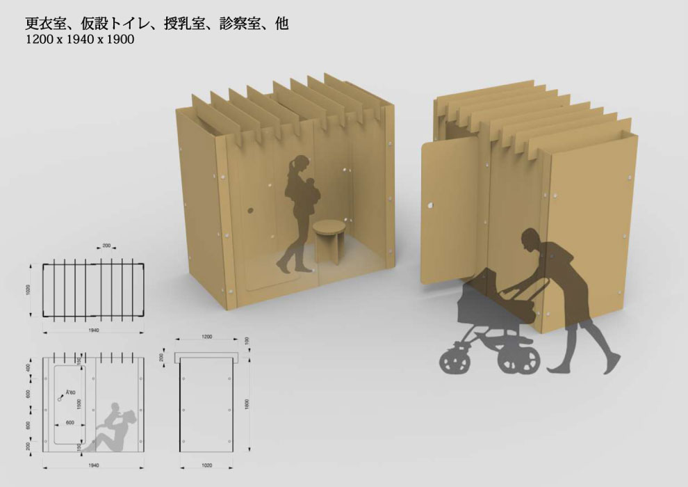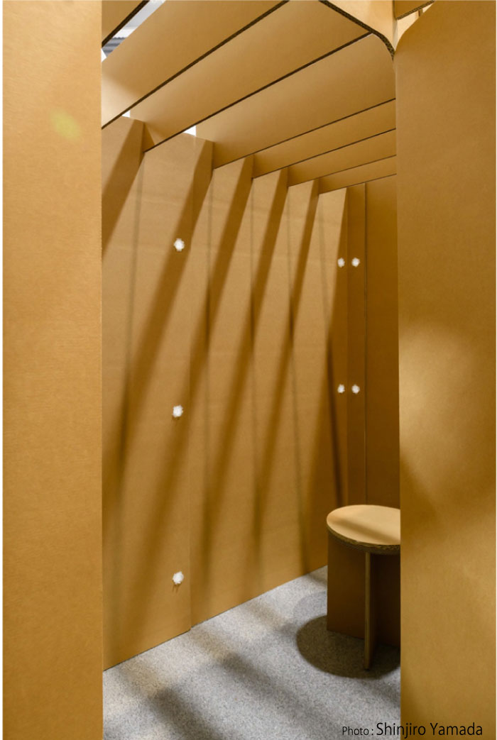 • 強化ダンボールスツールも中に置けるので更衣室等として使用することができます。
