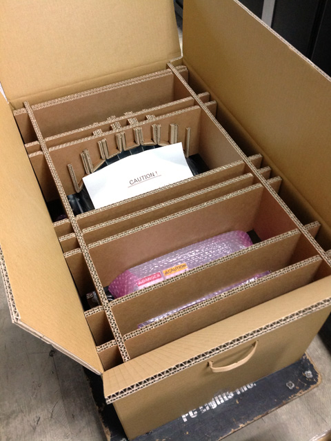 今回のご依頼は表面塗装の擦れにも気を付けなければいけないのでダンボールの表面で受けるように設計しました。