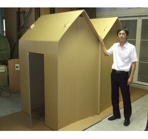 工学院大学建築学部建築学科 鈴木教授と共同でダンボールシェルターを製作しました。 鈴木教授は、震災時における避難所でプライバシーが確保されない生活によるストレスを減らし、より人間的な生活がすぐに出来るようにと”ダンボールシェルター”を開発されました。