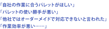 現状お使いのパレットに不満をお持ちの方、オーダーメイドのパレットをご希望の方は、ぜひ大幸紙工にご用命ください。
